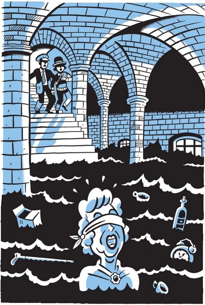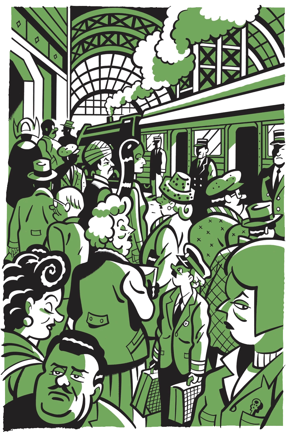 Once on the train, Lizzie switches disguises and pretends to be Sally's nephew. The train makes an unexpected stop, and then Snicket finds them again in their compartment. Incredibly nervous, Sally almost breaks character several times. Snicket informs them that a murder was committed and that Hangfire is aboard the train, before telling Lizzie to hide her porter's uniform better. After the train crashes, Sally sticks by Lizzie as she reunites with her family, before offering to give autographs to the other passengers.