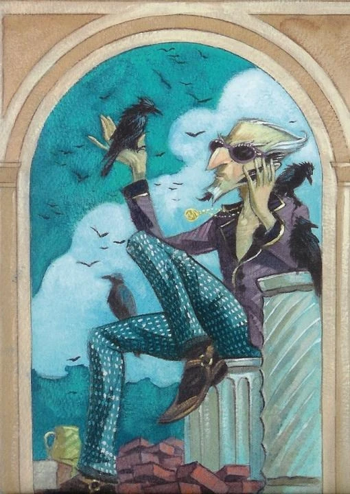 He is a 'famous' detective obsessed with what's cool, including ridiculous sunglasses which cover up his one eyebrow and green plastic shoes with yellow lightning bolts on them that hide the tattoo of an eye on his ankle. He seemingly murdered the real police chief of the Village of Fowl Devotees.