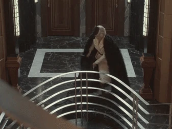Esmé donning a fur coat made from animals killed in unpleasant ways.
