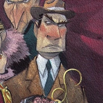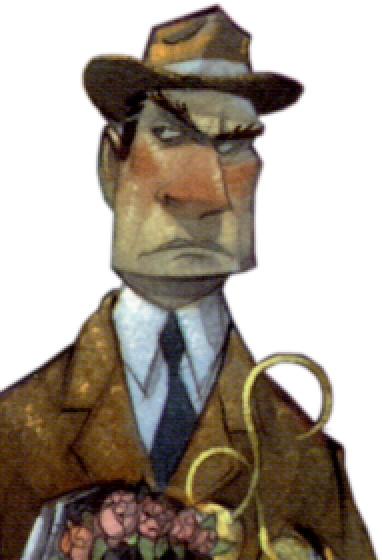 He is a bit distracted upon arrival, forgetting that he has to look at the body and requesting a cup of coffee, and consistently referring to Olaf as his boss. After transporting Monty's body from the Reptile Room to the car, he comes to the kitchen for coffee and claims the doctor died of a snakebite from the Mamba du Mal. He also takes some canned peaches from Monty's cupboard, to Klaus's fury. He joins Olaf in attempting to have Arthur Poe ride in his car so that Olaf can drive away with the Baudelaires, while the children sneak out of the room to investigate.