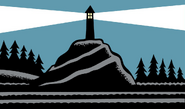 The Mallahan Lighthouse is a large, towering structure perched on a cliff in Stain'd-by-the-Sea, above where the sea used to be. The tower leans slightly to one side and is in desperate need of a paint job. The light of the lighthouse is still active, however, as there are ships for the light to guide to shore.