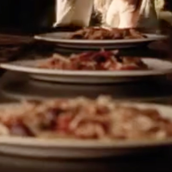 In the film, the Baudelaires already find random pasta scattered around Count Olaf's filthy kitchen.[4] There is also a deleted scene in the film in which Count Olaf walks on the table and cruelly kicks the dinner around the room: