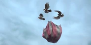 The eagles' history is not mentioned in the series. The Man with a Beard but No Hair and the Woman with Hair but No Beard used three of them to pursue Kit Snicket after she escapes with the Sugar Bowl.[8] They were later used again to kidnap the Snow Scouts[9] and attack the Self-Sustaining Hot Air Mobile Home.[10]
