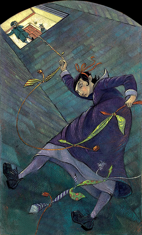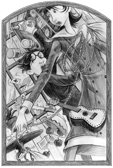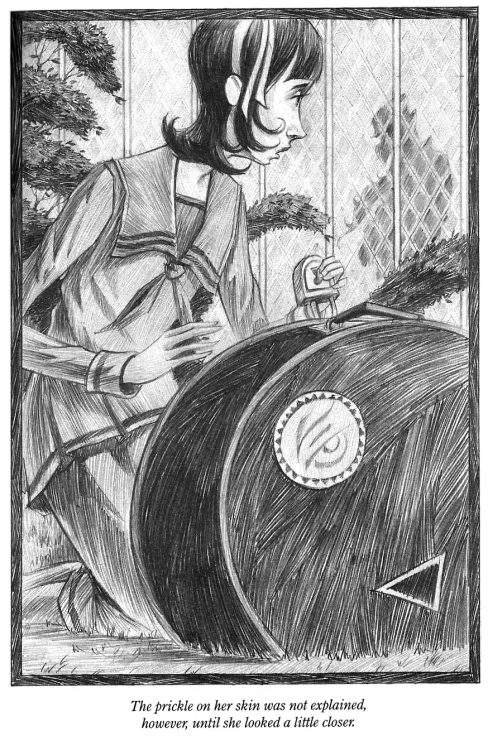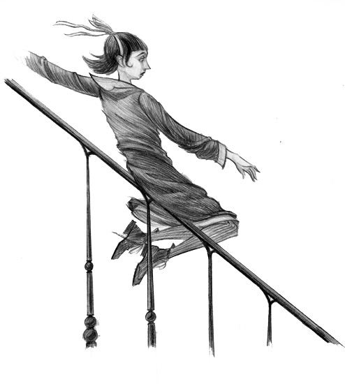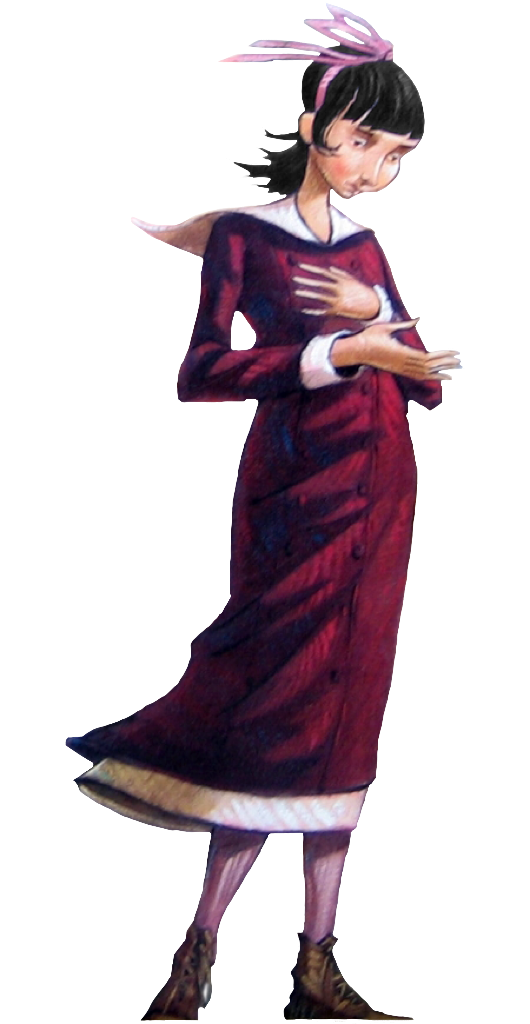 | “ | Anyone who knew Violet well could tell she was thinking hard, because her long hair was tied up in a ribbon to keep it out of her eyes. Violet had a real knack for inventing and building strange devices, so her brain was often filled with images of pulleys, levers, and gears, and she never wanted to be distracted by something as trivial as her hair. | ” |