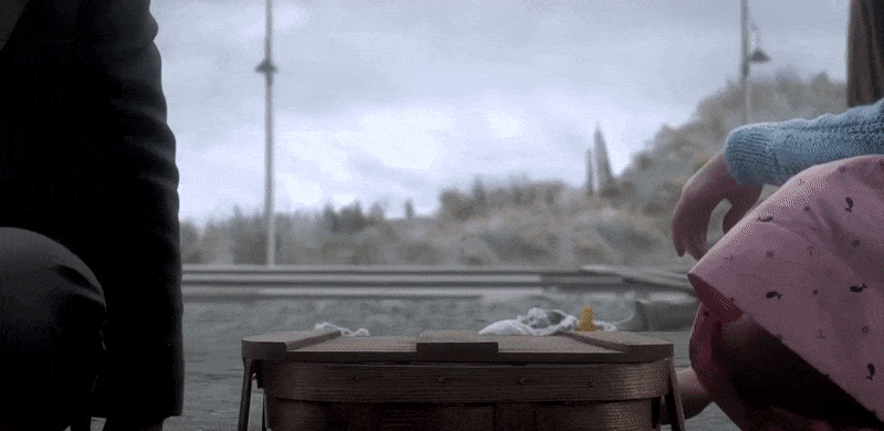 Violet was at Briny Beach with her younger siblings, thinking of how to construct a device that could retrieve skipping rocks when Mr. Poe approaches them in the mist; before she recognizes him, she considers throwing a rock at the mysterious figure in the fog. Poe regretfully informs them that their parents have perished in a terrible fire that burned their mansion to the ground. Violet assumed Poe was kidding at first, but once the news sank in, she drops the rock and takes Klaus's hand as they follow Mr. Poe.