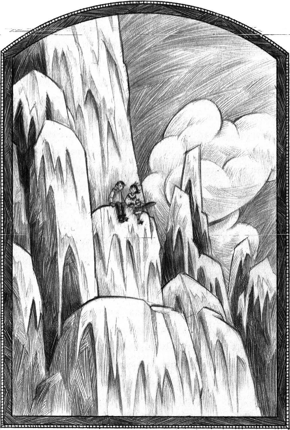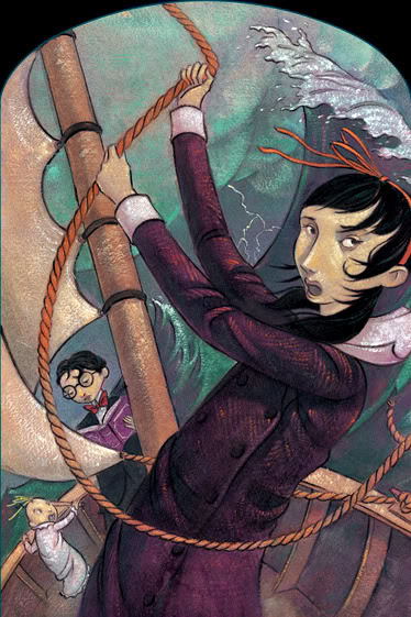 They find that the Fickle Ferry is closed due to the weather, and find Sham's sailboat rental, which is guarded by the Henchperson of Indeterminate Gender. Sunny sneaks in and steals the keyring, but they awaken. Violet tries to distract them while Klaus unlocks the dock. The Henchperson lifts up the children, and almost takes them away, but slips on the atlas Klaus had brought with them, and the orphans escape and steal a sailboat. Violet, who had studied naval blueprints, and Klaus, who had read books about sailboats, manage to work the boat, and though the frightening storm rages around them, they manage to reach Curdled Cave, under the Lavender Lighthouse, just as the storm dies.